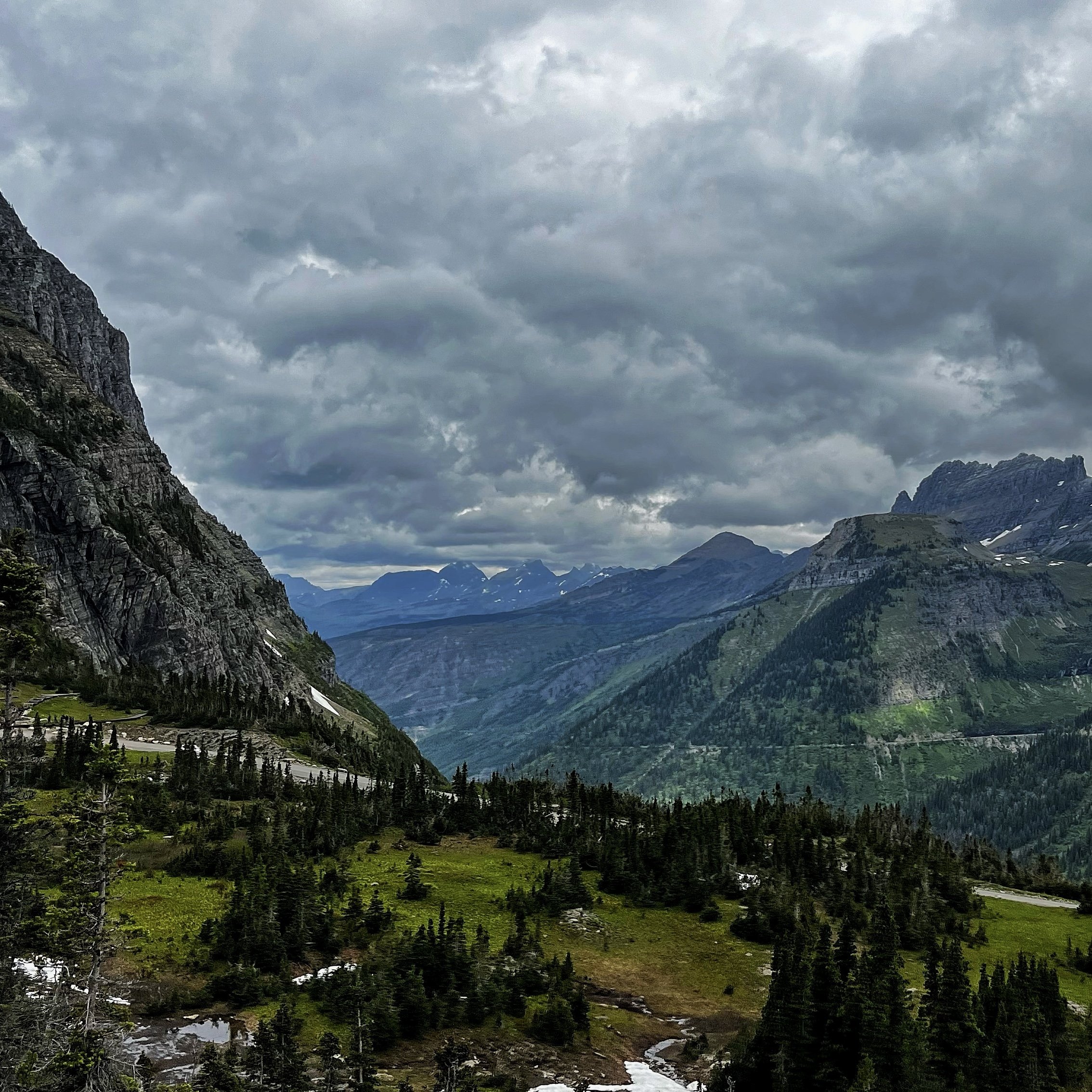 Slipped through Grand Teton and Yellowstone National Park before the crowds! First time on Going to the Sun Road at Glacier National Park …didn’t see the sun much, but what we did see was spectacular!